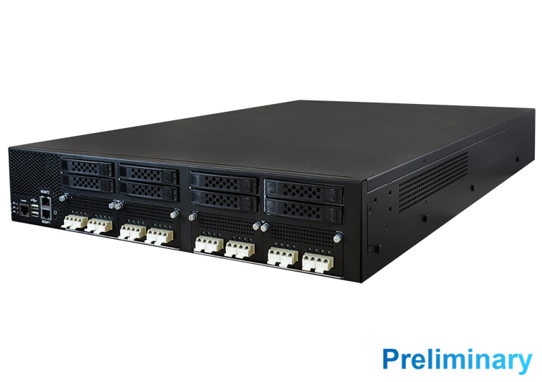 It comes equipped with dual 5th Gen Intel® Xeon® Scalable (formerly Emerald Rapids) Processors, providing unmatched computational power and efficiency, as well as support for up to 16x DDR5 RDIMMs that can handle up to 1,024GB of memory. Network flexibility is maximized with options for up to 8x NIC modules, allowing up to 64 GbE ports. Storage options are also expansive with up to 8x 2.5” swappable HDD bays, and system management is streamlined through an optional IPMI 2.0 module. The INA7605 also includes a 1x PCI-E (x16) expansion slot and is supported by 2x 1600-watt redundant power supplies, ensuring reliability and uninterrupted service.
